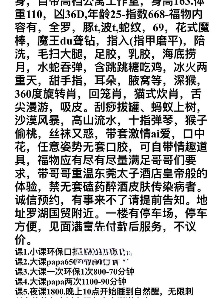 、保证金、照片验证、视频验证等任何提前付费的行为;以及引导下载APP,千万不要上当。同时也请注意仙人跳,在寻欢前不要露富和带过于贵重随身物品。本站只提供整合信息平台并不对寻欢经历负责,被骗一概与本站无关。信息真假请自行甄别,碰到有问题的信息,请及时举报给我们删除信息。